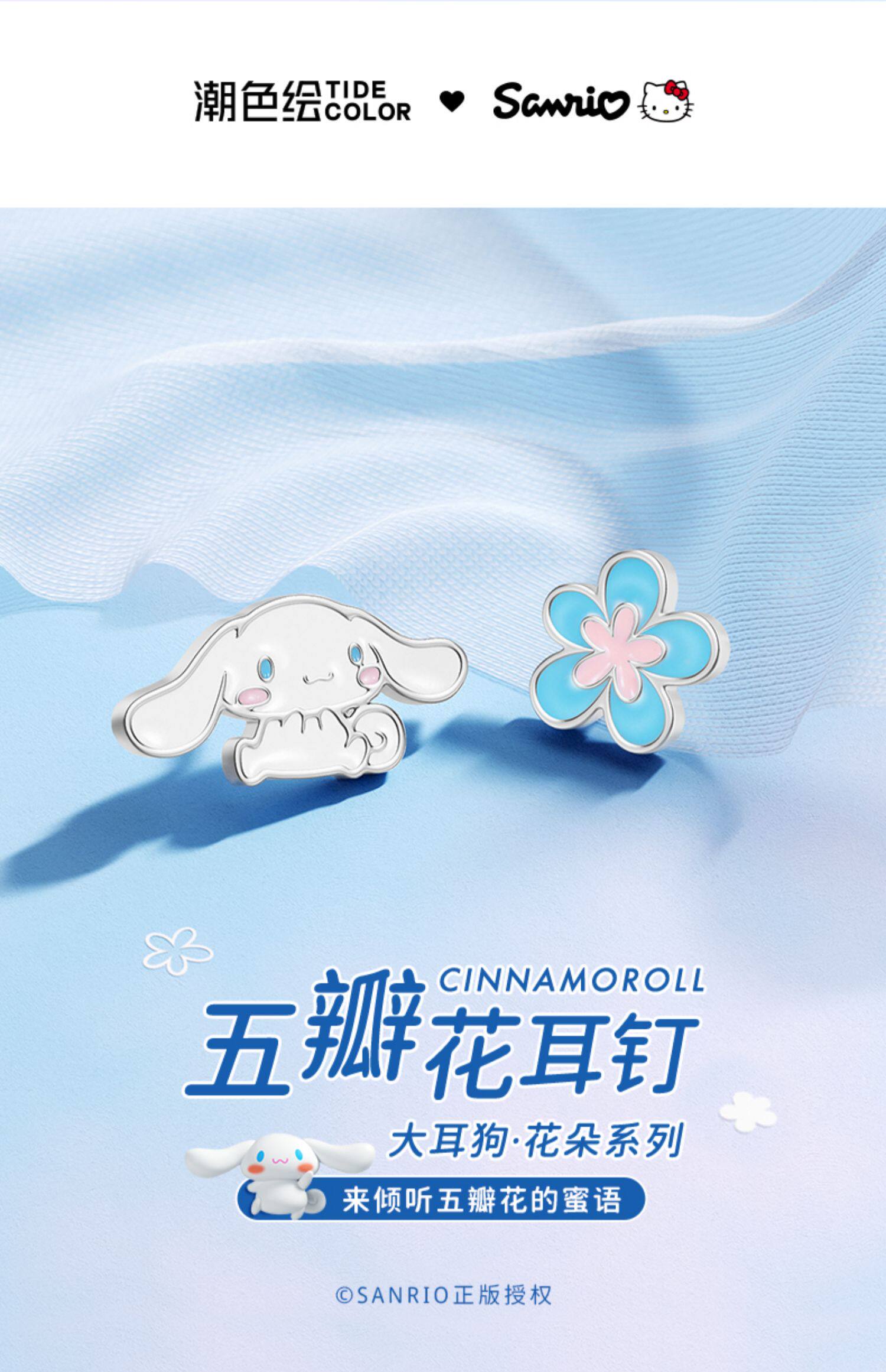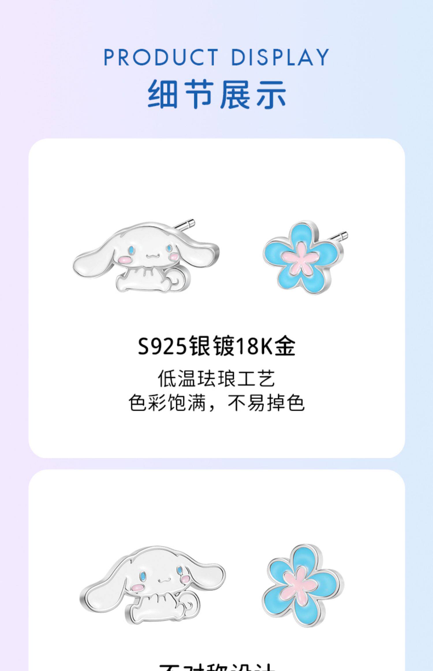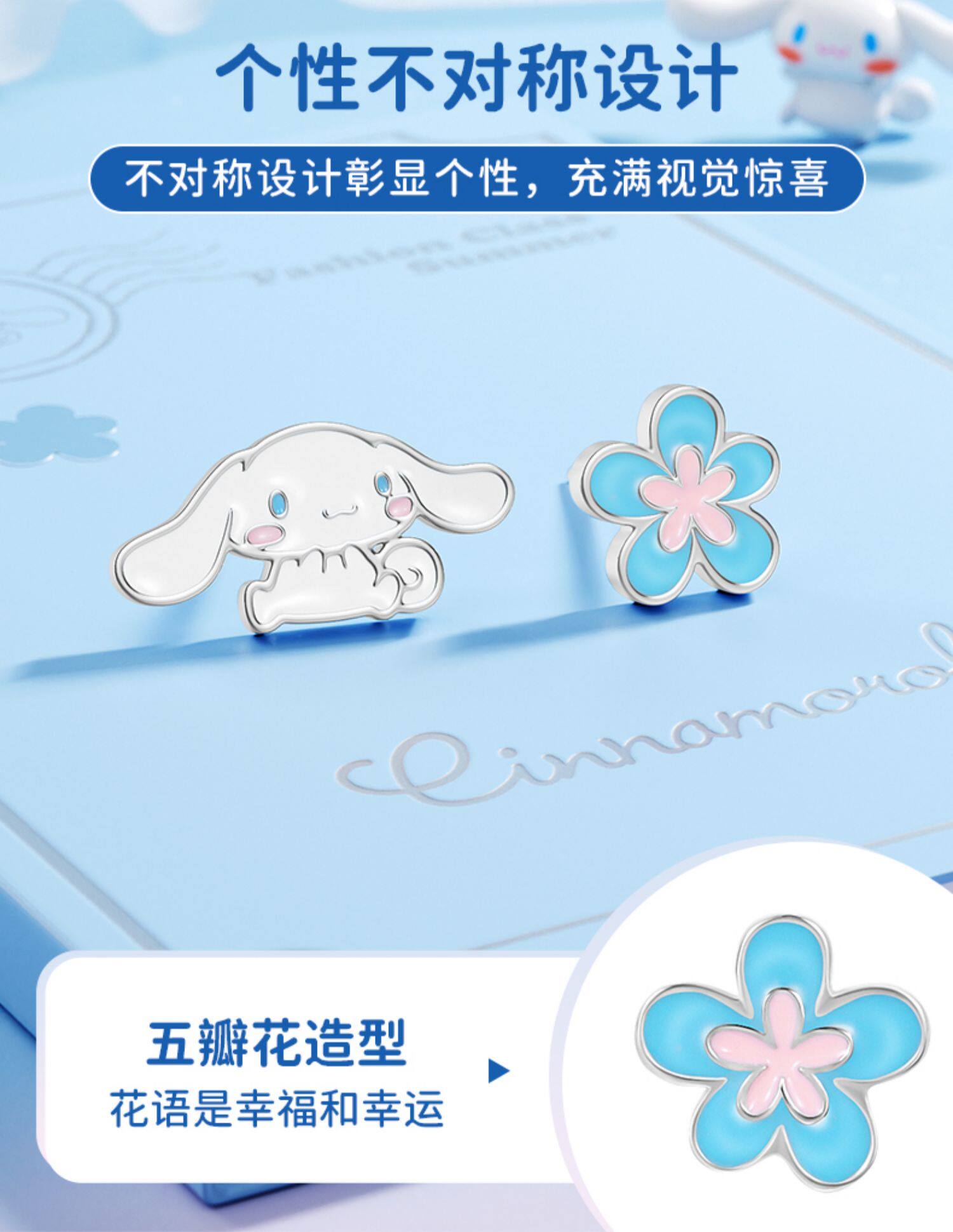 Cinnamoroll 5-Petal Flower Asymmetrical 925 Sterling Silver Stud Earrings
