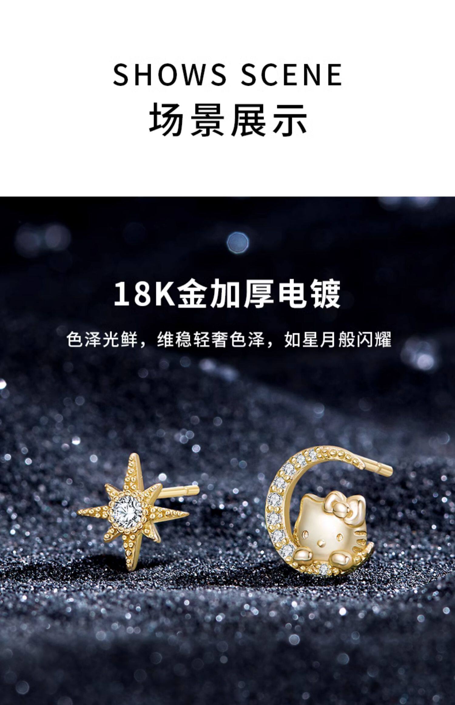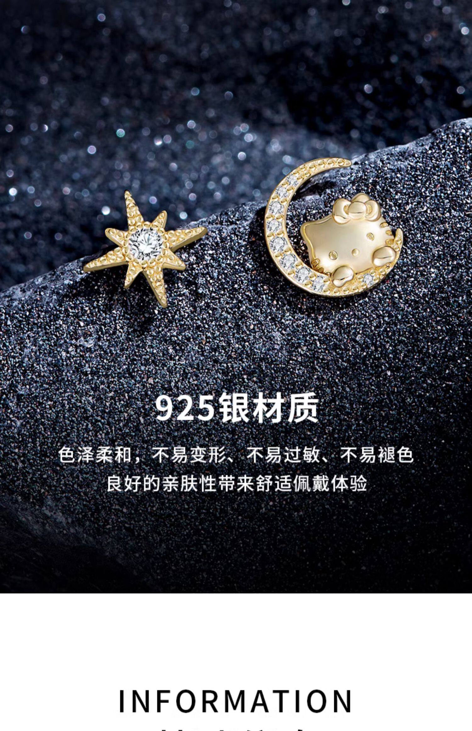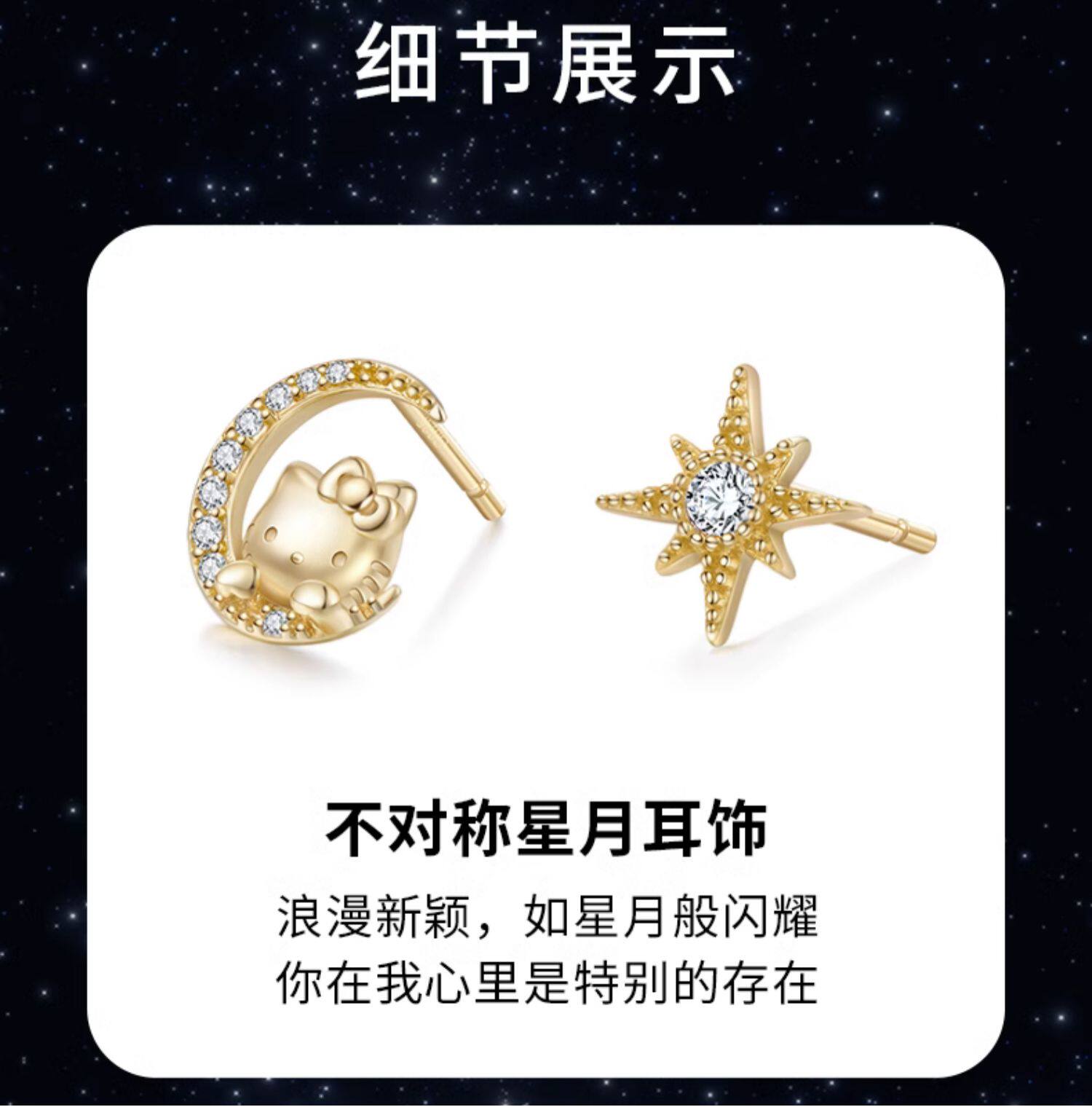 Hello Kitty Star Moon 18K Gold Plated Asymmetrical 925 Sterling Silver Stud Earrings