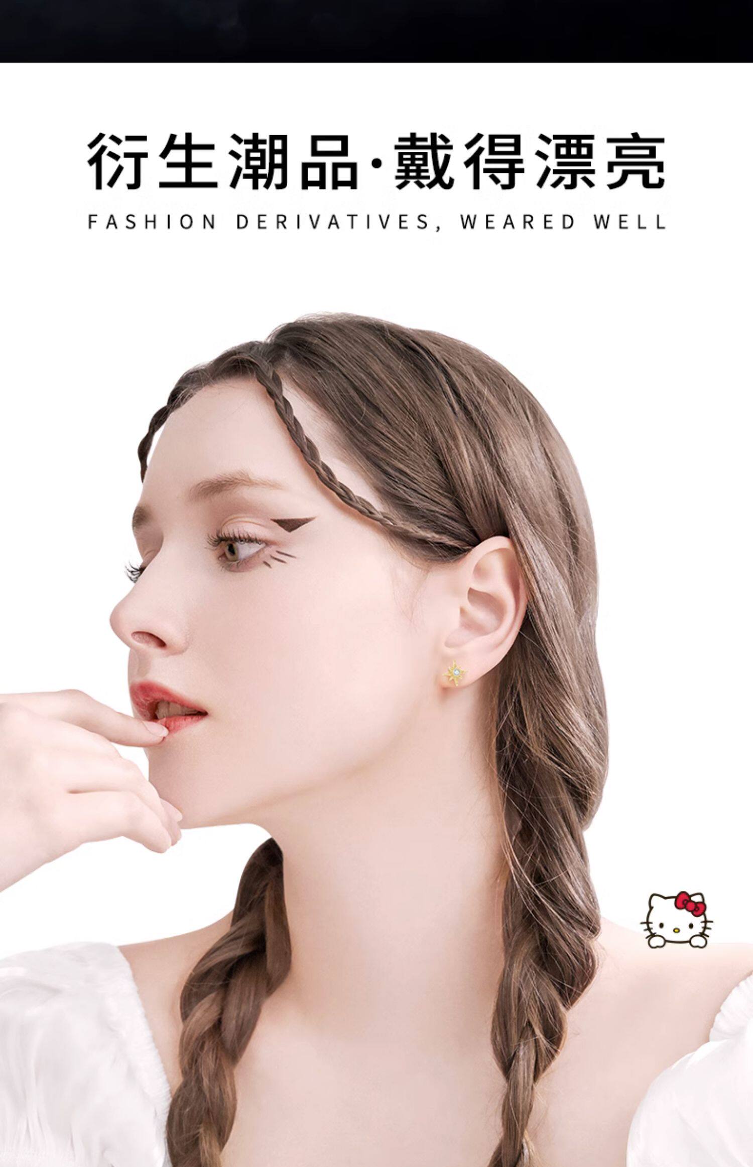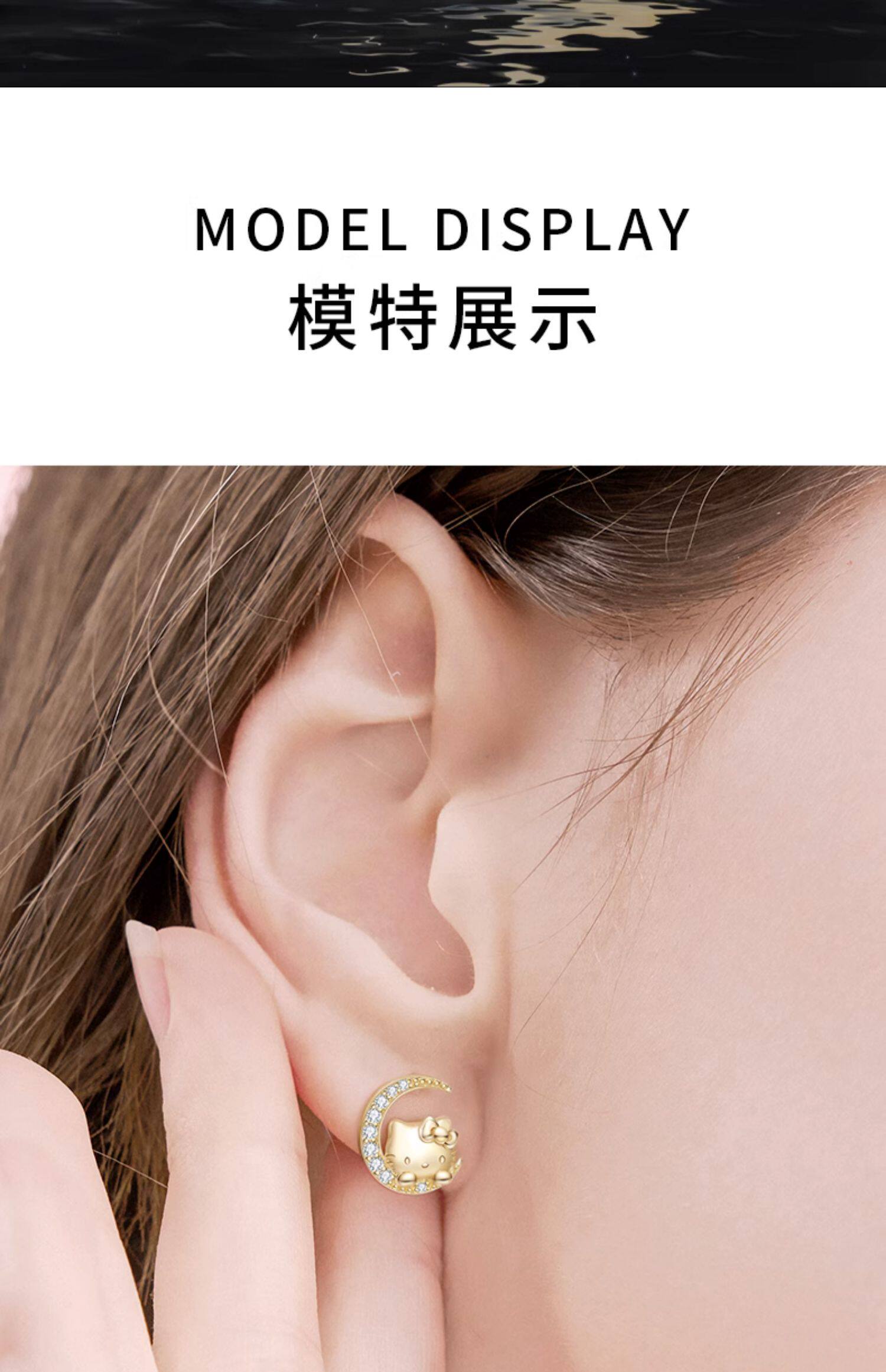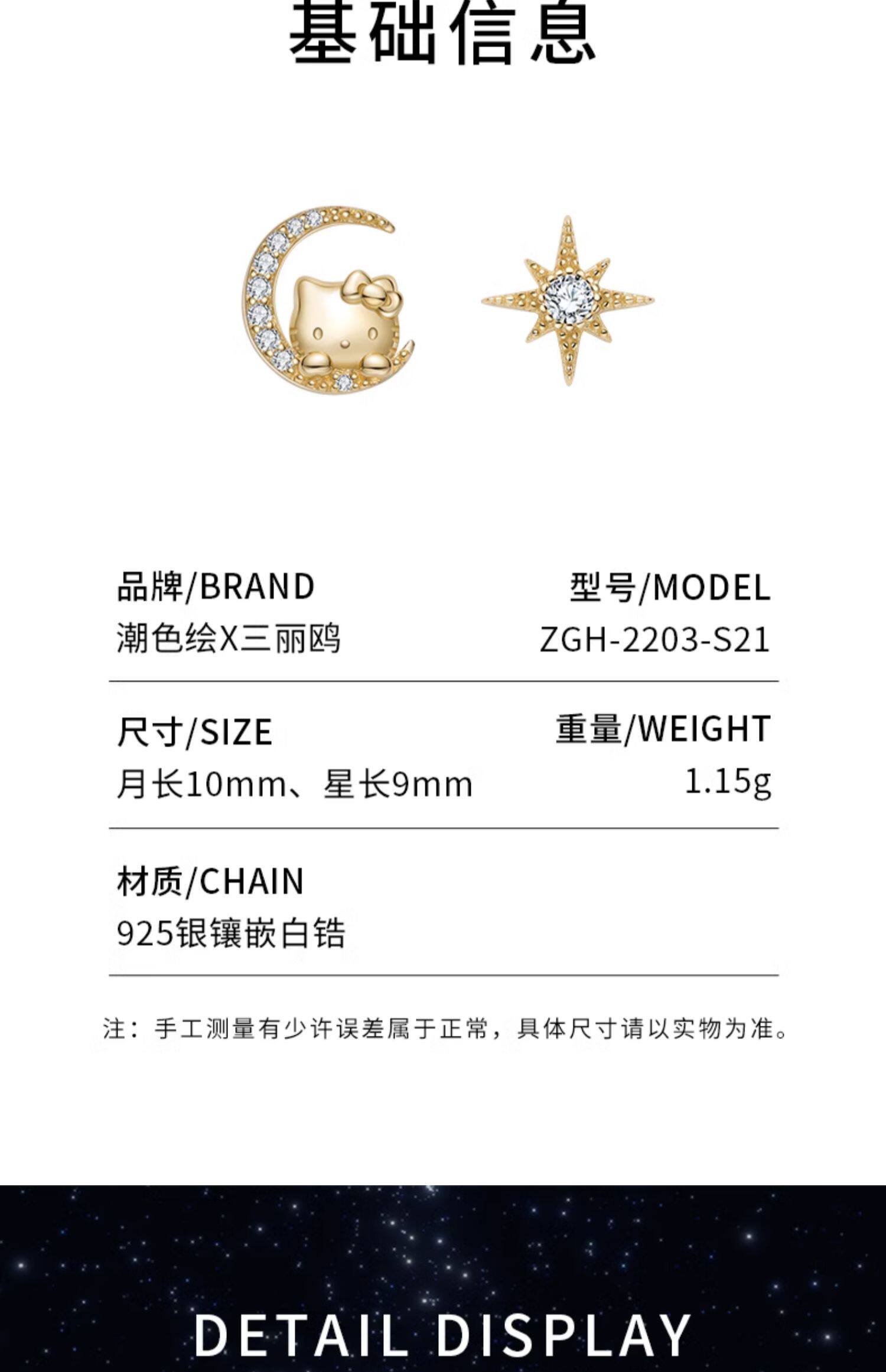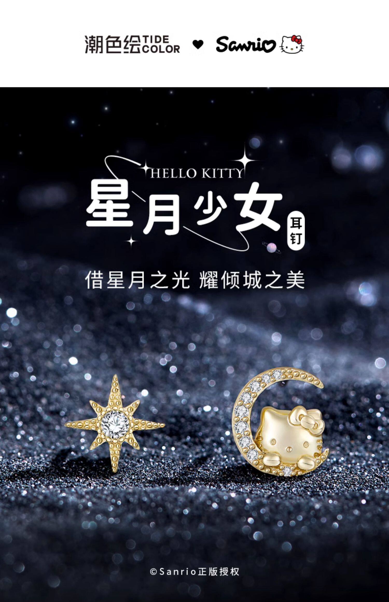 Hello Kitty Star Moon 18K Gold Plated Asymmetrical 925 Sterling Silver Stud Earrings