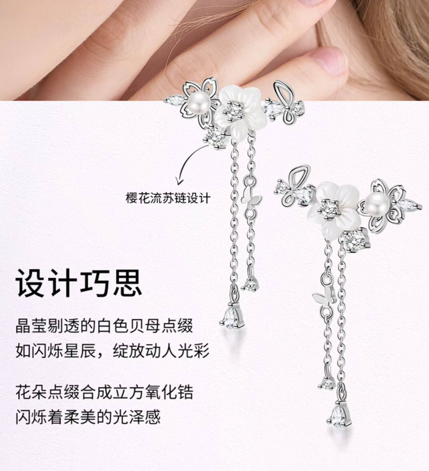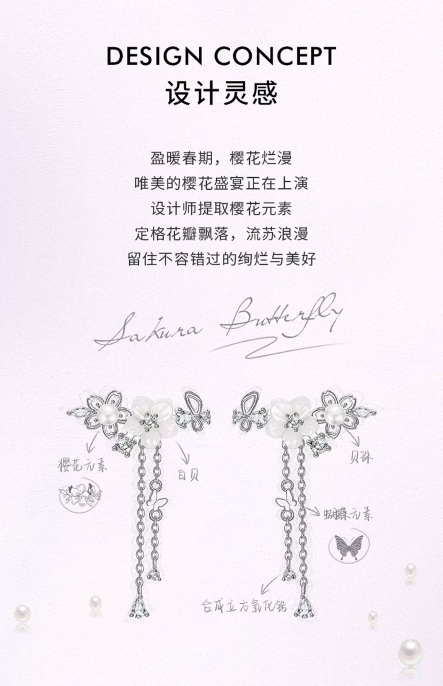 Sakura Butterfly Zircon Pearl Earrings