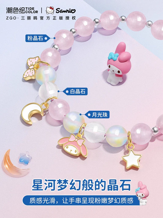 My Melody Star Moon Bow Pink White Crystal Moonstone Bracelet