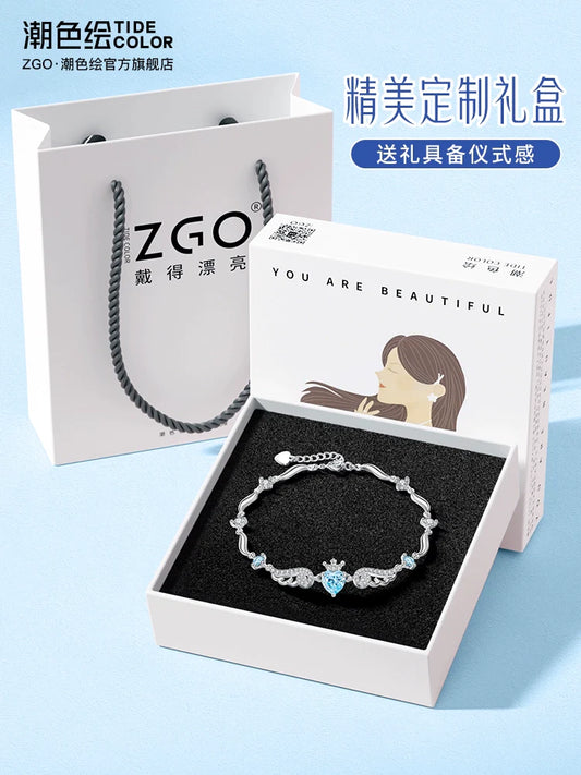 Cinnamoroll Blue Glaze Planet Key Heart Zircon 18K Gold Plated Copper Bracelet