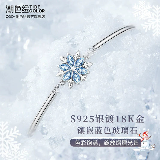 Snowflake Blue Glaze Copper 925 Sterling Silver Bracelet