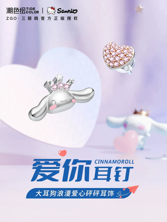 Cinnamoroll Beating Heart Zircon 925 Sterling Silver Stud Earrings