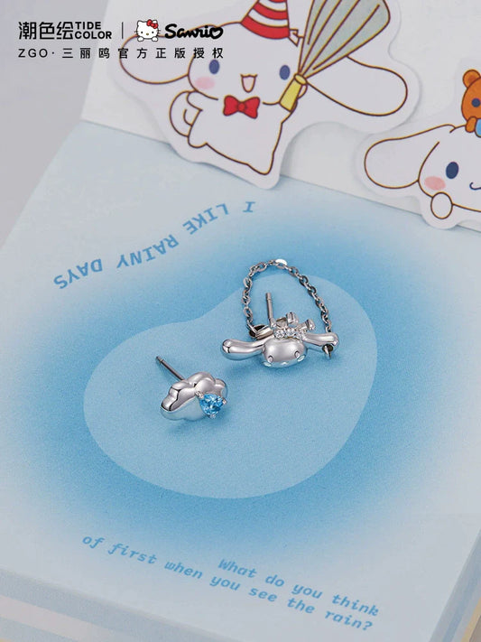 Cinnamoroll Summer Cloud Rain Asymmetrical 925 Sterling Silver Zircon Stud Earrings