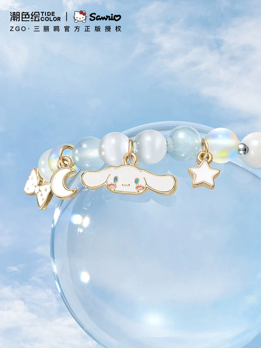 Cinnamoroll Star Moon Bow Blue White Crystal Moonstone Bracelet
