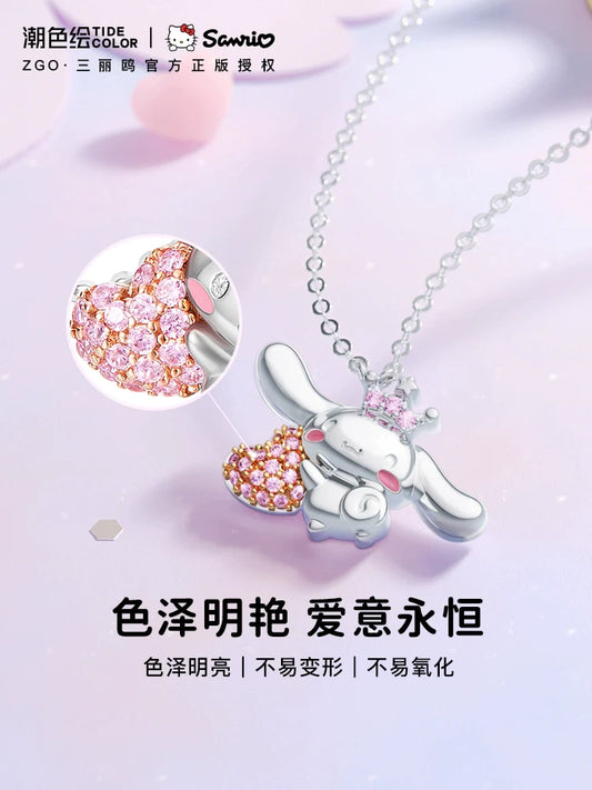 Cinnamoroll Pink Heart Zircon 925 Sterling Silver Necklace
