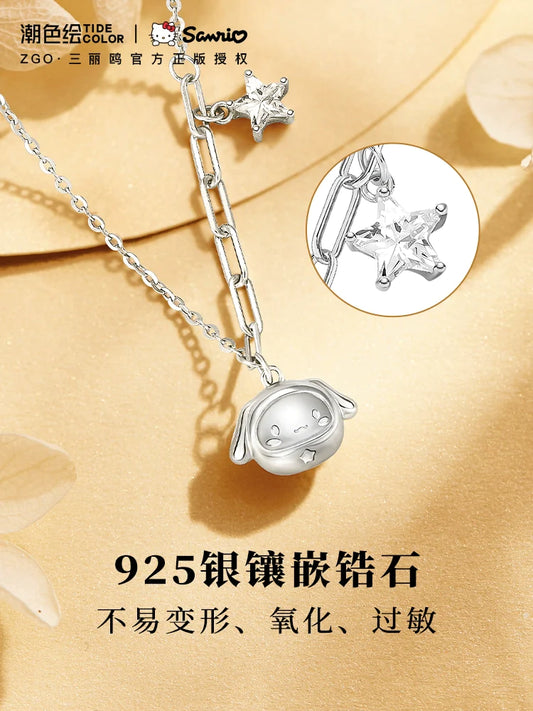 Cinnamoroll Beating Heart Zircon 925 Sterling Silver Necklace