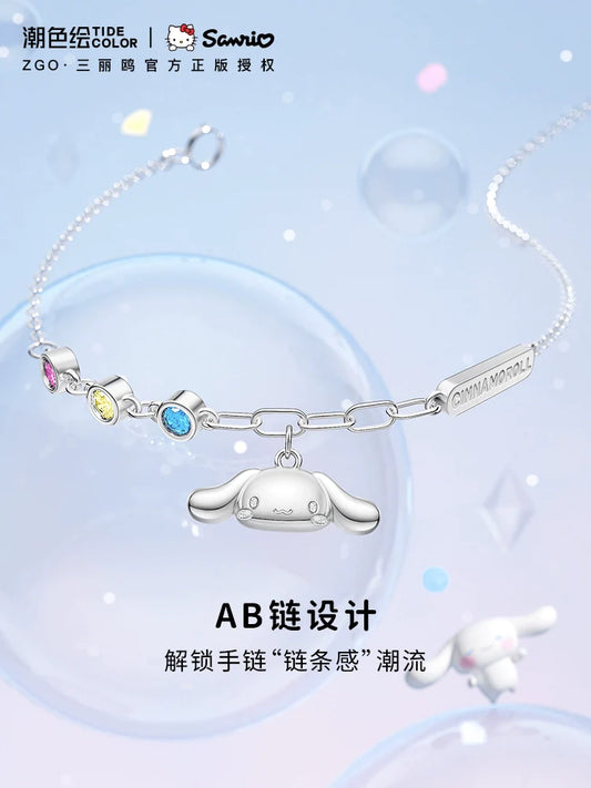 Cinnamoroll Red Yellow Blue Zircon 925 Sterling Silver Bracelet