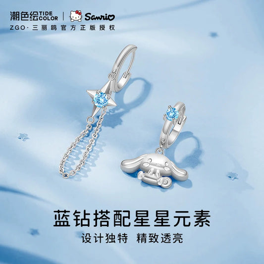 Cinnamoroll Blue Star Zircon Asymmetrical 925 Sterling Silver Earrings