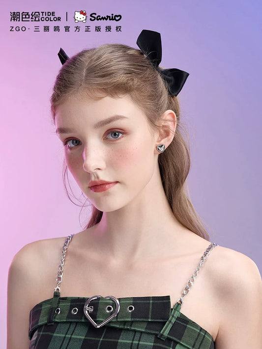 Kuromi Bow Black Heart 925 Sterling Silver Stud Earrings