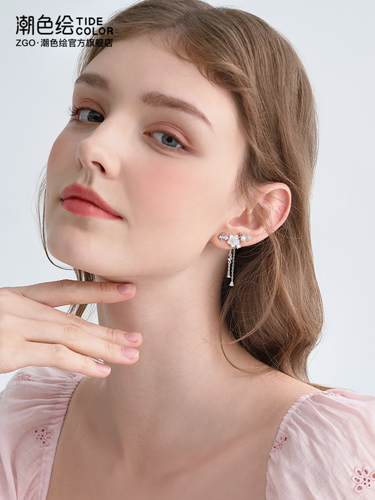 Cinnamoroll 5-Petal Flower Asymmetrical 925 Sterling Silver Stud Earrings