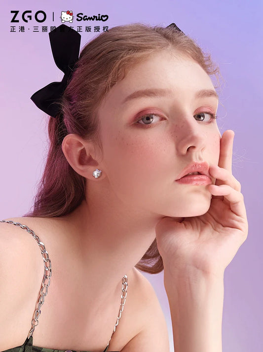 Hello Kitty Pearl Shell 925 Sterling Silver Stud Earrings