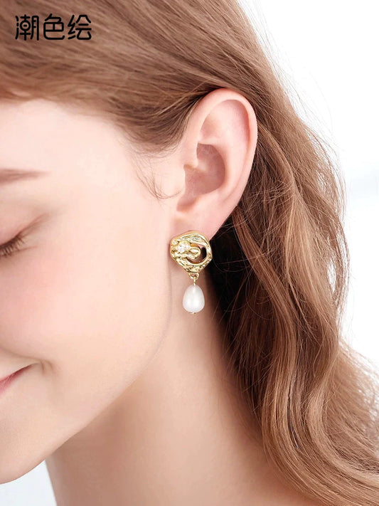 Catwoman Pearl Zircon 925 Sterling Silver Stud Earrings
