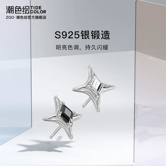 4-Pointed Star 925 Sterling Silver Stud Earrings