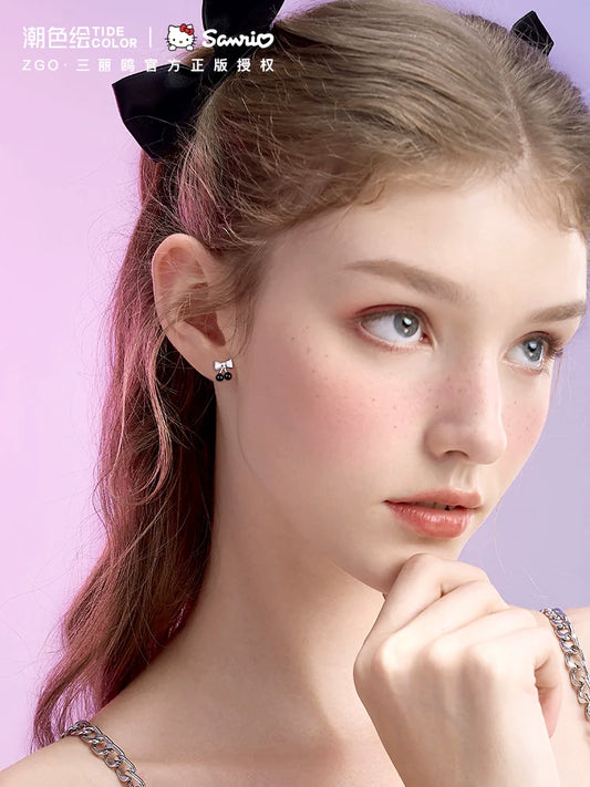 Kuromi Cherry Bow Asymmetrical 925 Sterling Silver Earrings