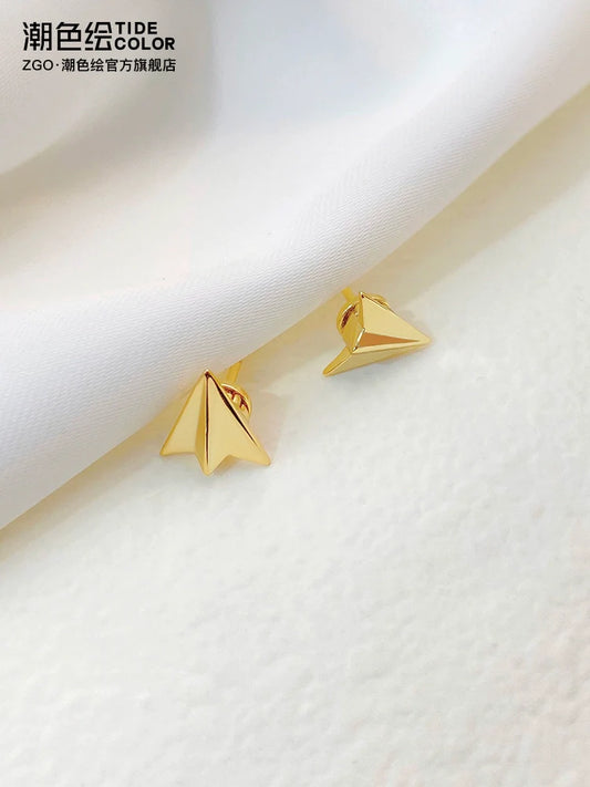 Origami Airplane 925 Sterling Silver Stud Earrings
