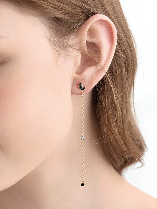 Star & Moon Tassel 925 Sterling Silver Earrings