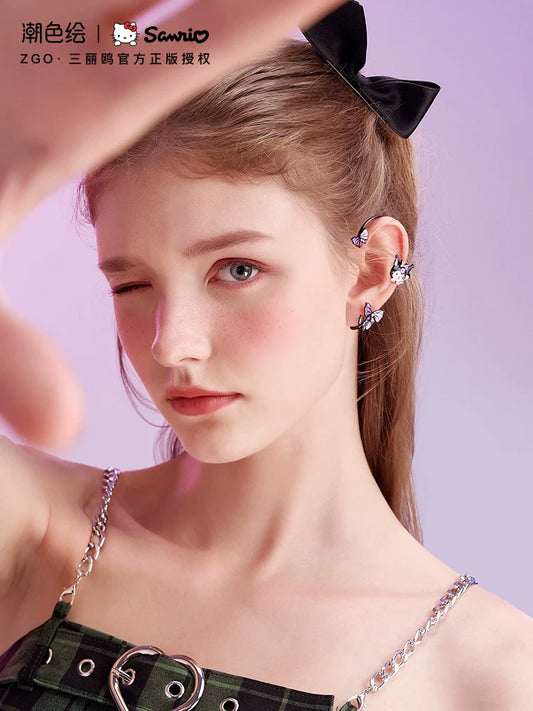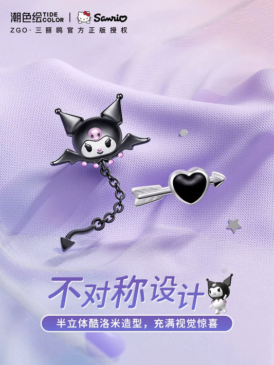 Kuromi Devil's Arrow Asymmetrical 925 Sterling Silver Earrings