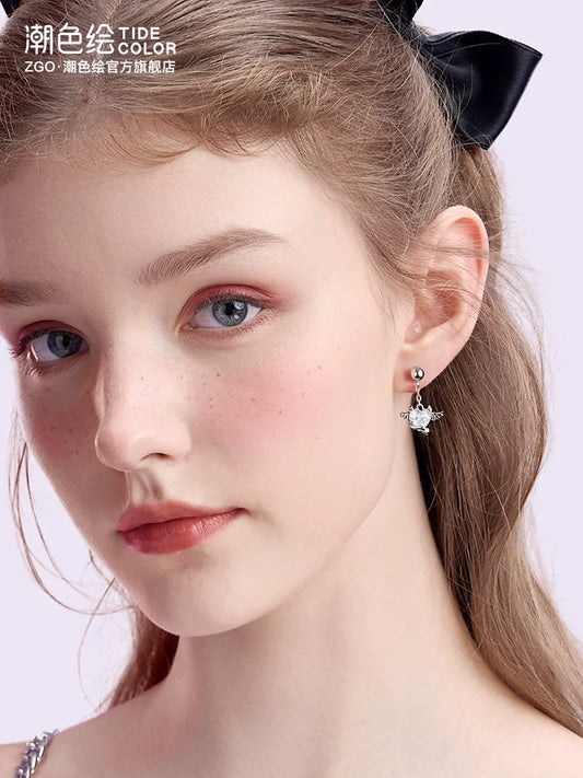 Cinnamoroll Beating Heart Zircon 925 Sterling Silver Stud Earrings