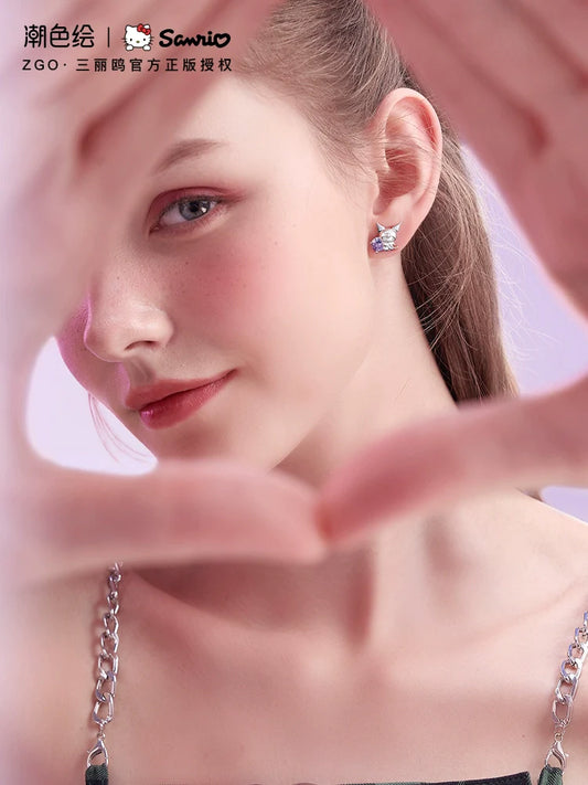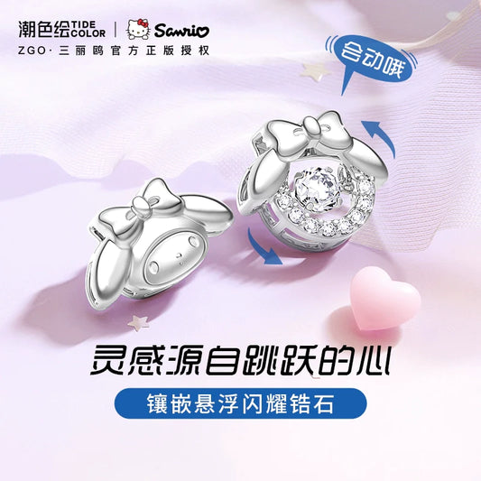 My Melody Beating Heart Zircon 925 Sterling Silver Stud Earrings