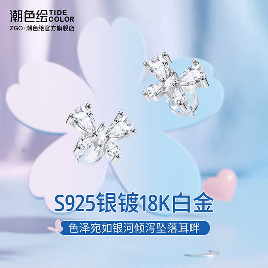 Flower Butterfly Zircon 925 Sterling Silver Stud Earrings