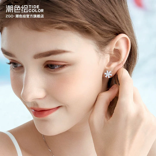Dancing Snowflake Zircon 925 Sterling Silver Stud Earrings
