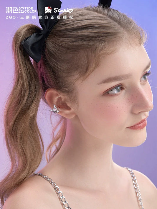 Kuromi Bow Asymmetrical 925 Sterling Silver Clip-on Earrings