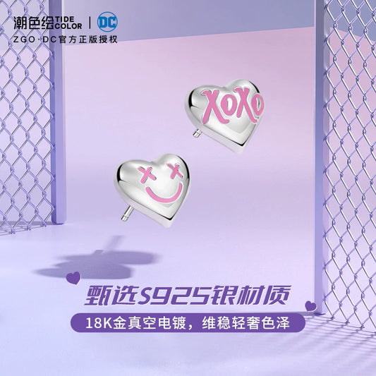 Harley Quinn Hearts Asymmetrical 925 Sterling Silver Stud Earrings