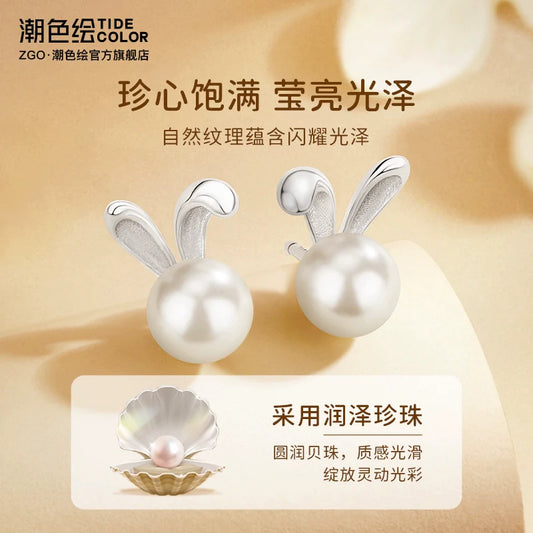 Pearl Bunny 925 Sterling Silver Stud Earrings