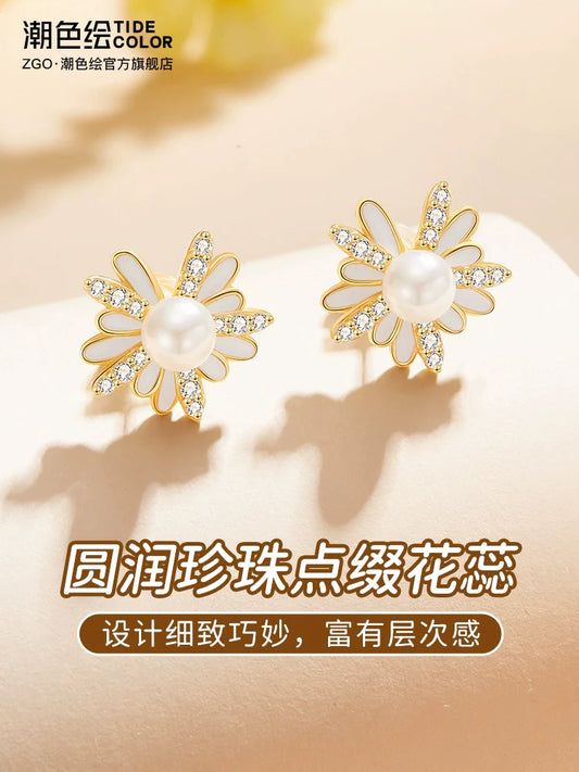 Daisy Pearl 925 Sterling Silver Stud Earrings