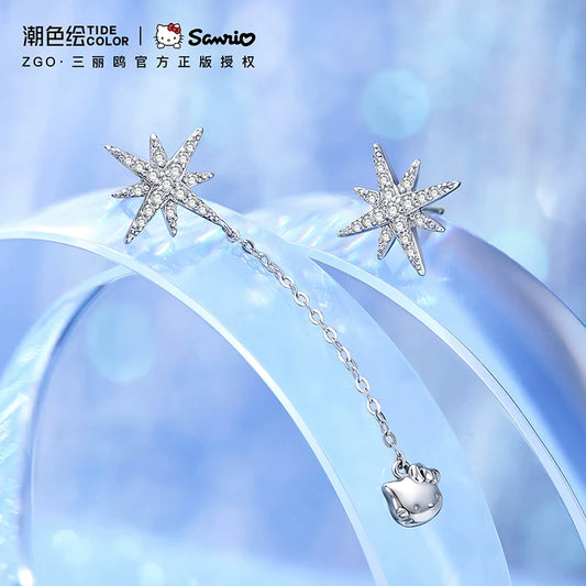Hello Kitty Eight Awn Star Zircon Asymmetrical 925 Sterling Silver Earrings