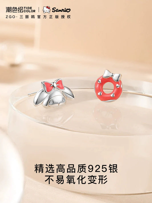 My Melody Doughnut Asymmetrical 925 Sterling Silver Stud Earrings