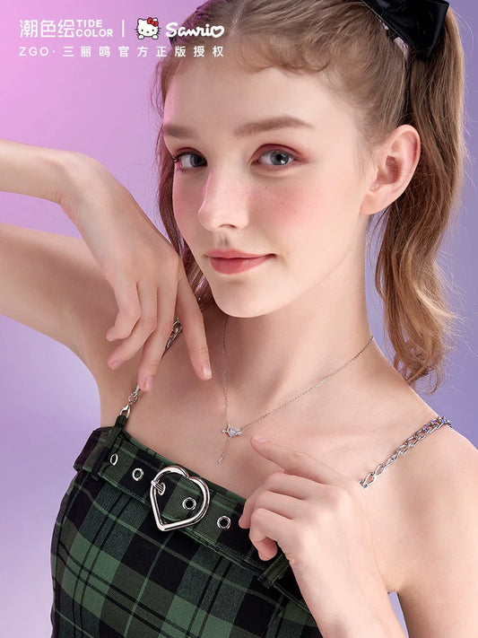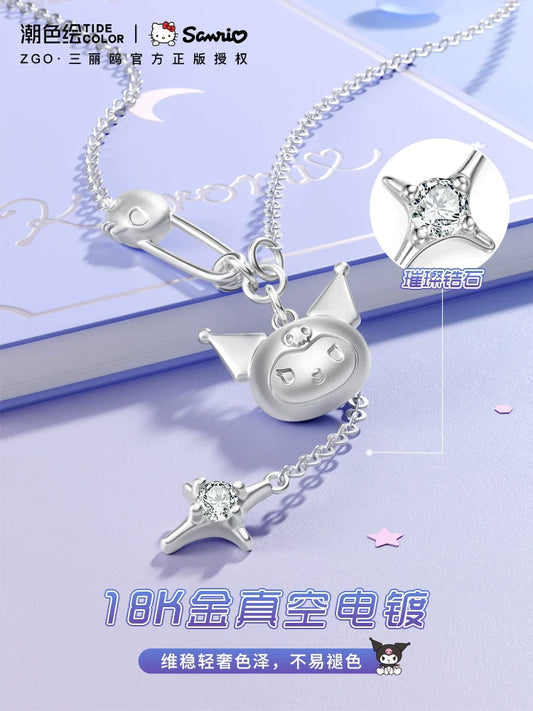 Kuromi Pin & 4-Pointed Star Zircon 925 Sterling Silver Necklace