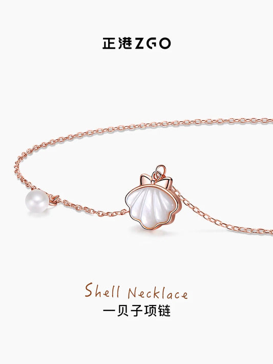 Hello Kitty 4-Leaf Clover Peal Shell 925 Sterling Silver Necklace