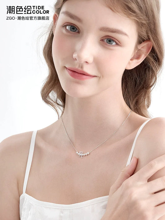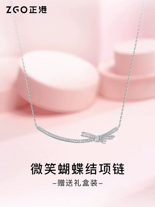 Smiley Bow 925 Sterling Silver Zircon Necklace