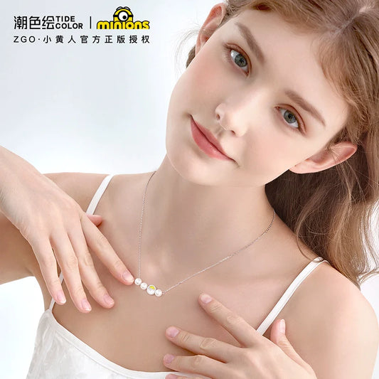 Minions Pearl Zircon 925 Sterling Silver Necklace