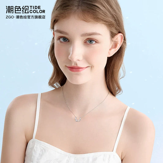 Butterfly Flower Zircon 925 Sterling Silver Necklace