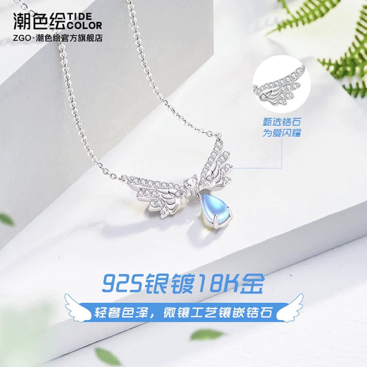 Angel's Wings Water Droplet Moonstone 925 Sterling Silver Necklace