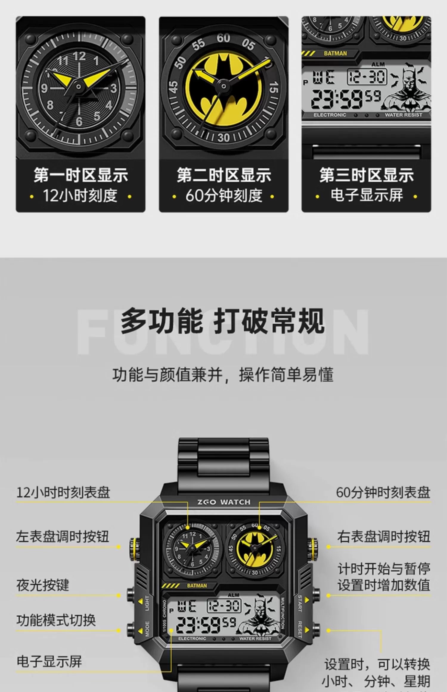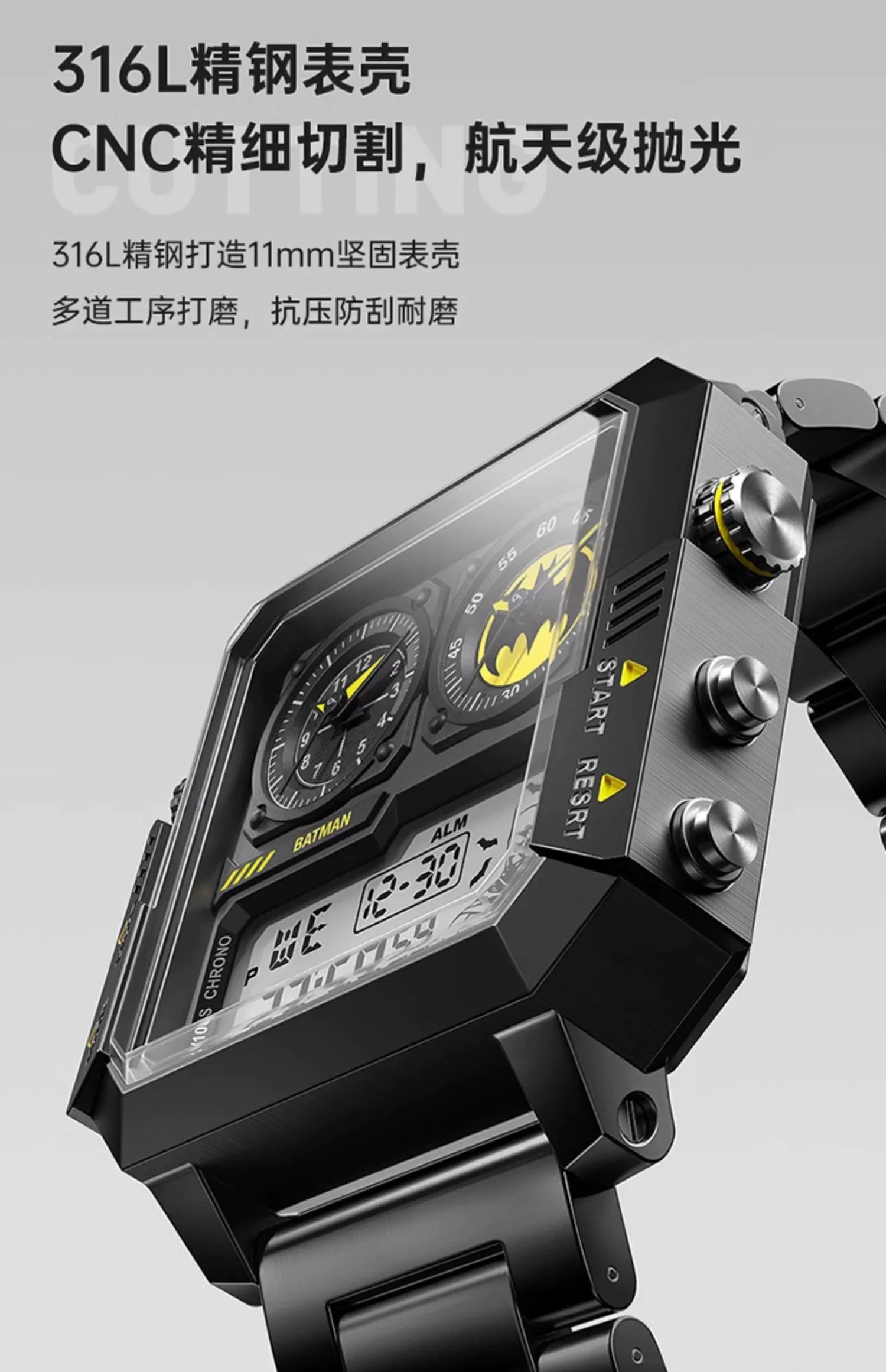 Batman Stainless Steel Men's Sports Watch 50M Waterproof Glow in the Dark