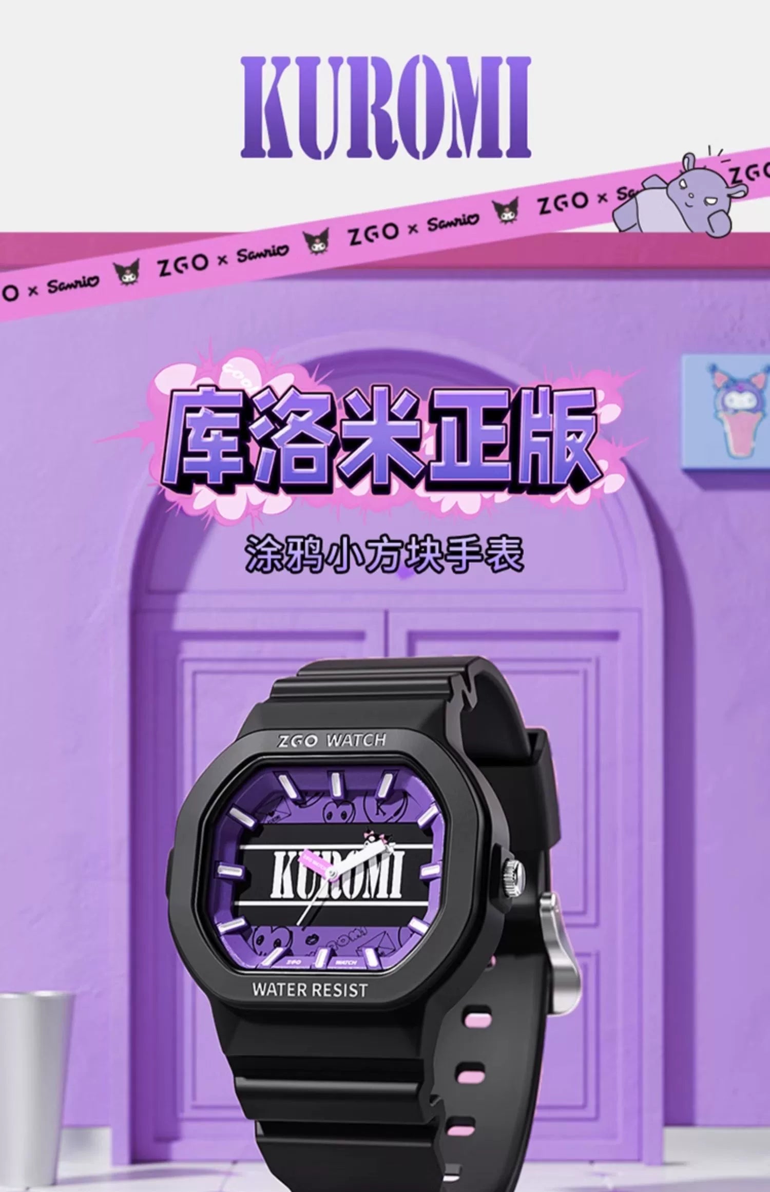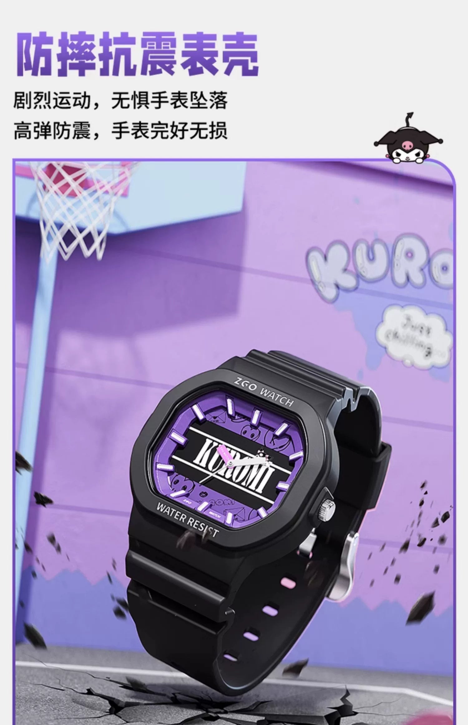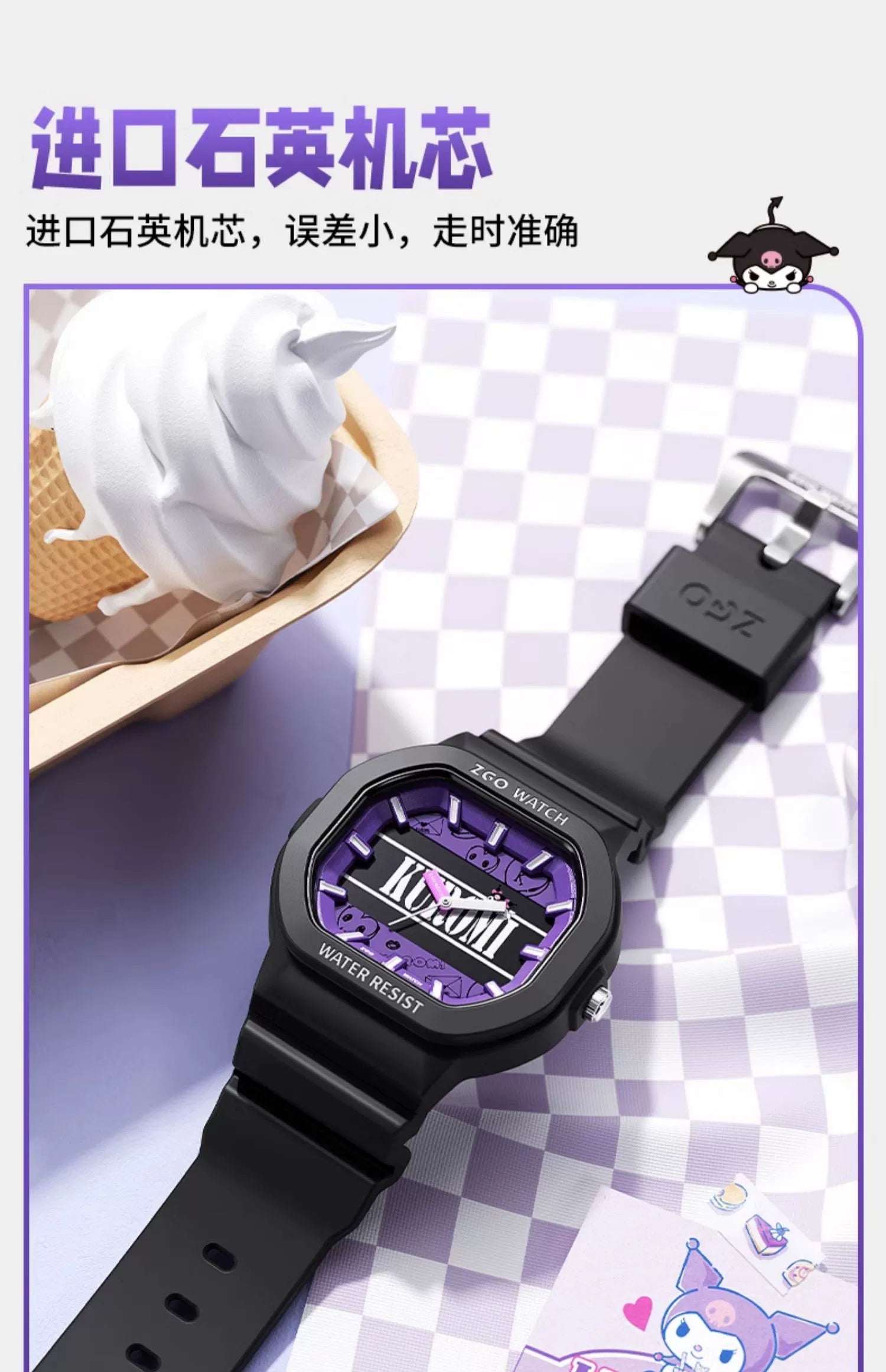 Kuromi Quartz Sports Watch 30M Waterproof Glow in the Dark