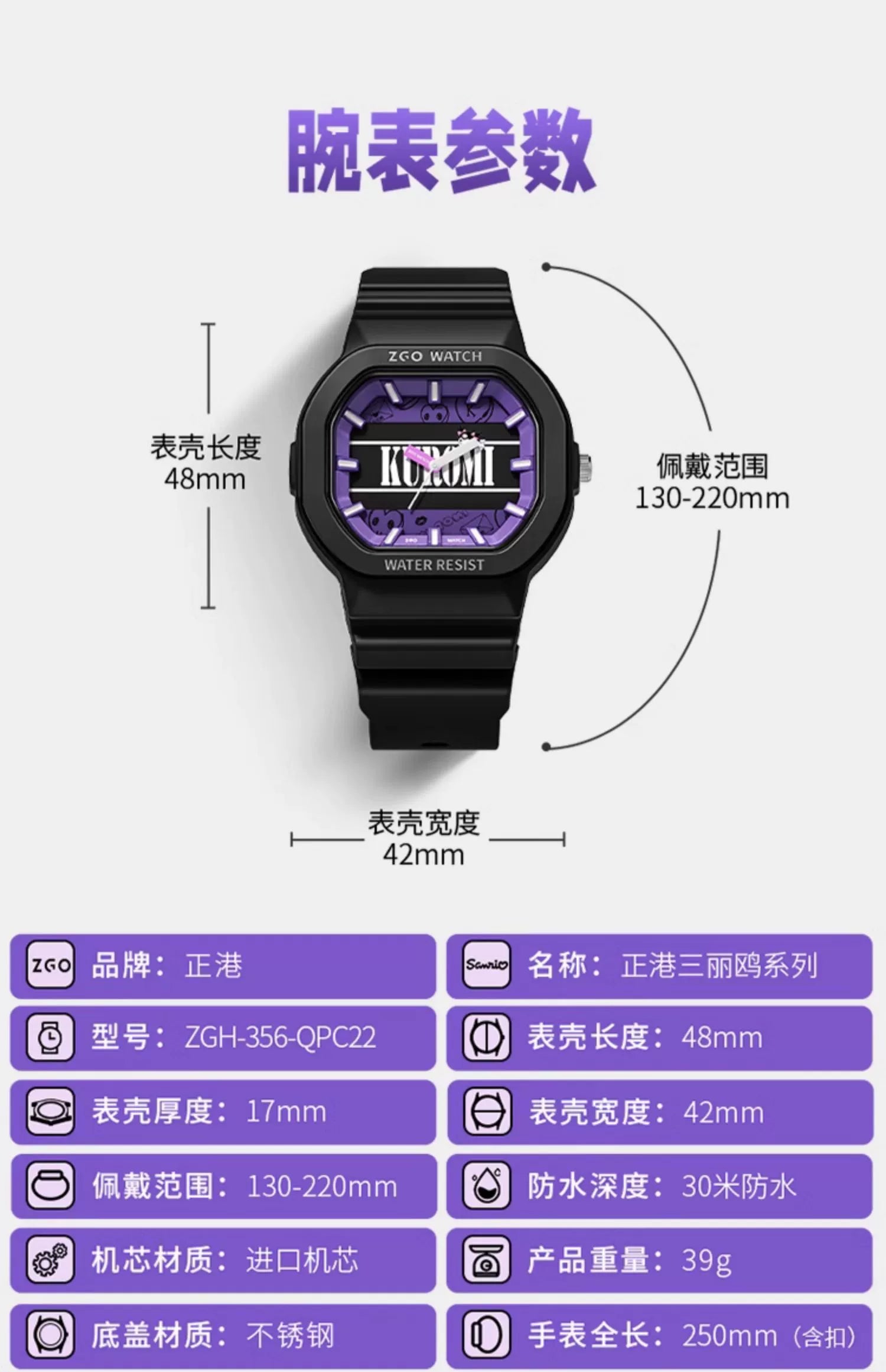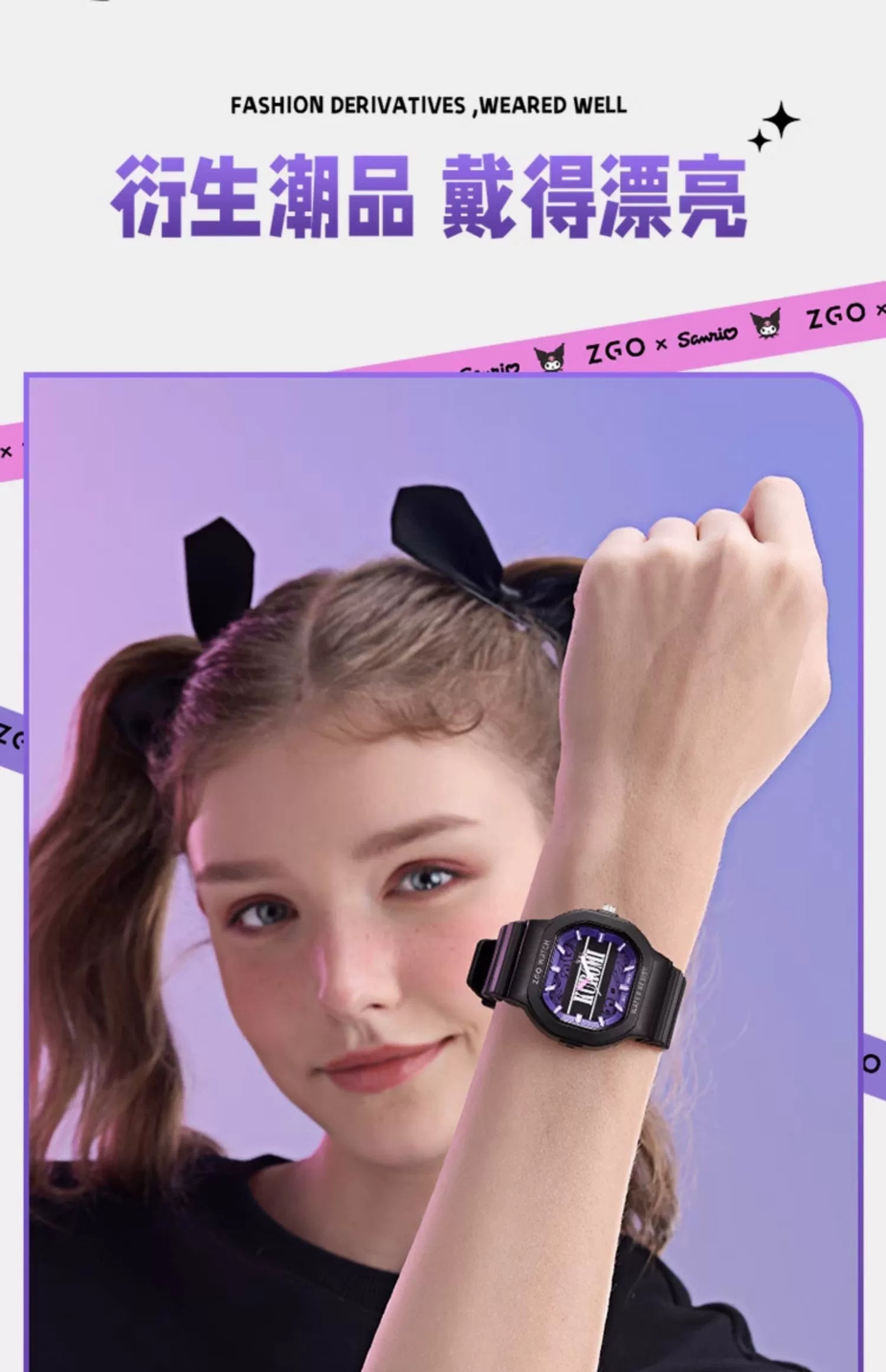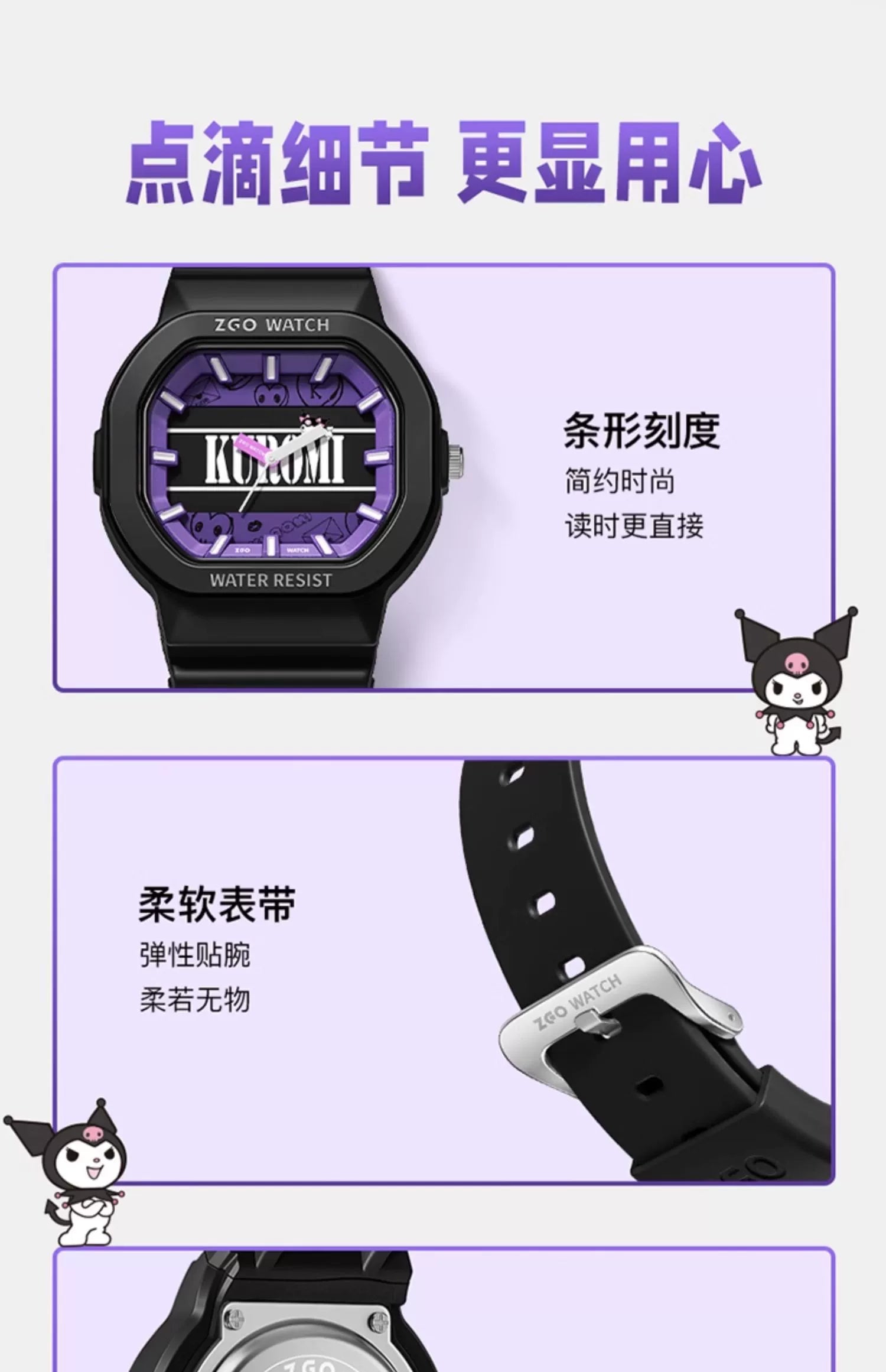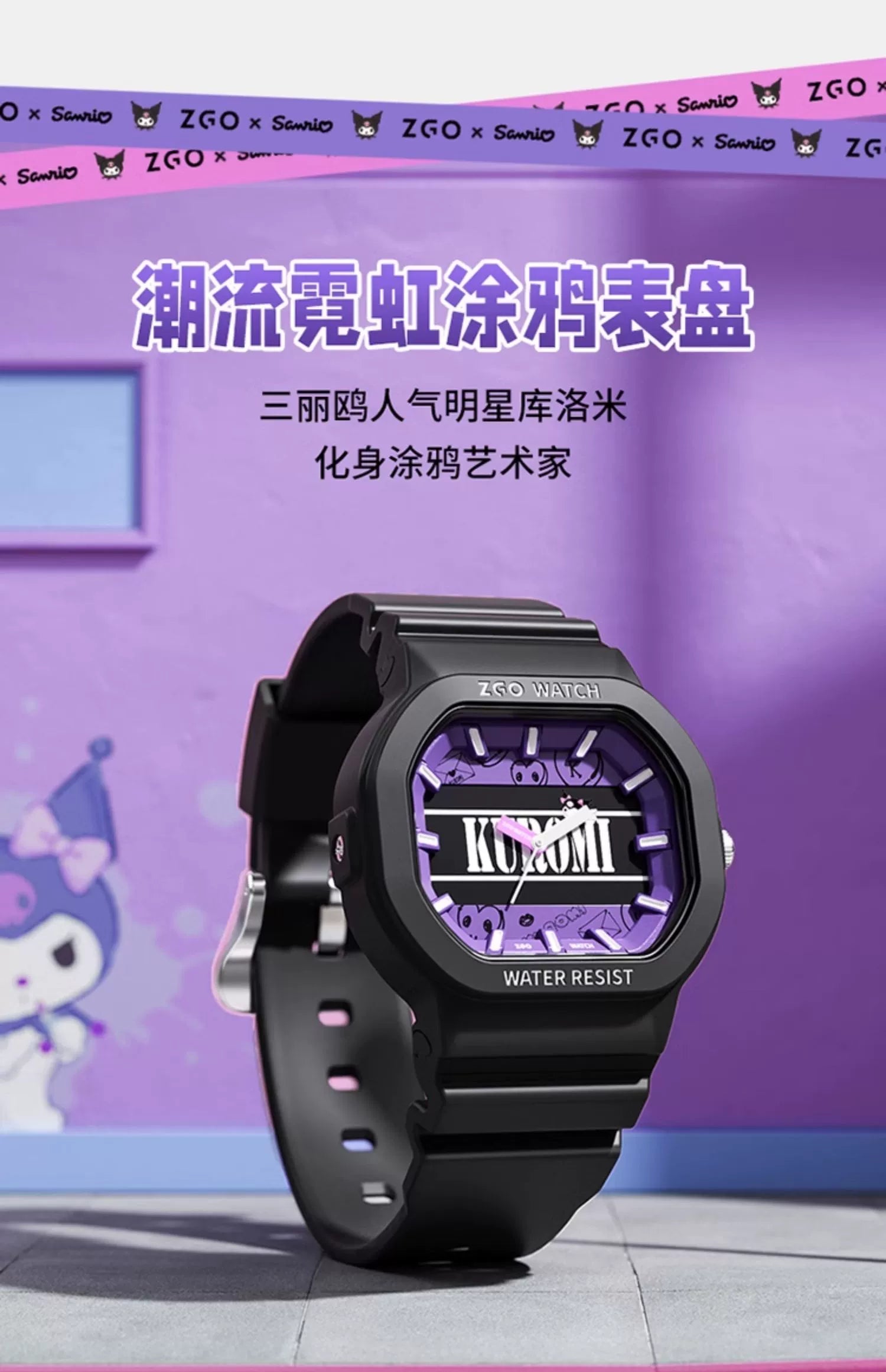 Kuromi Quartz Sports Watch 30M Waterproof Glow in the Dark