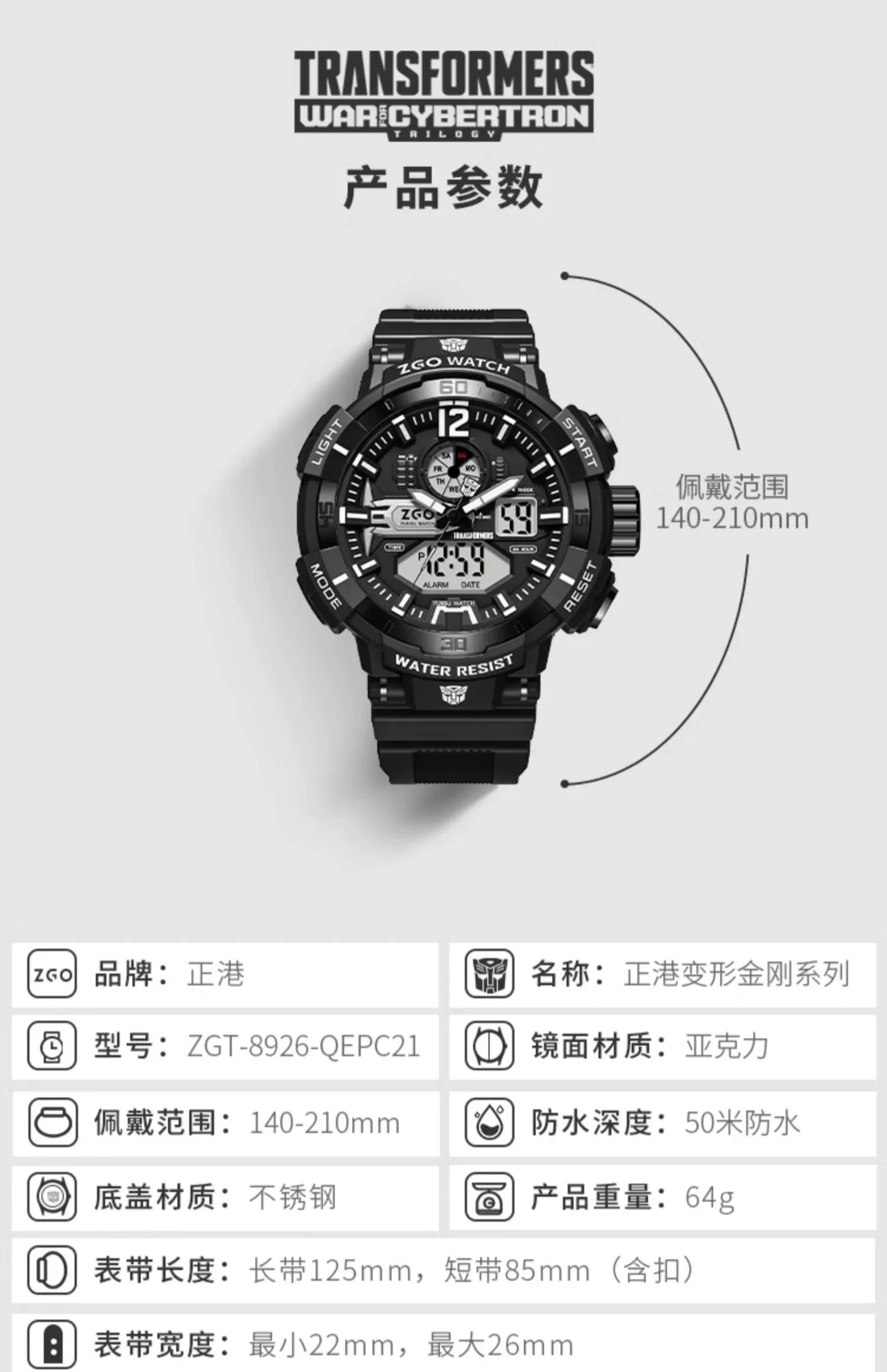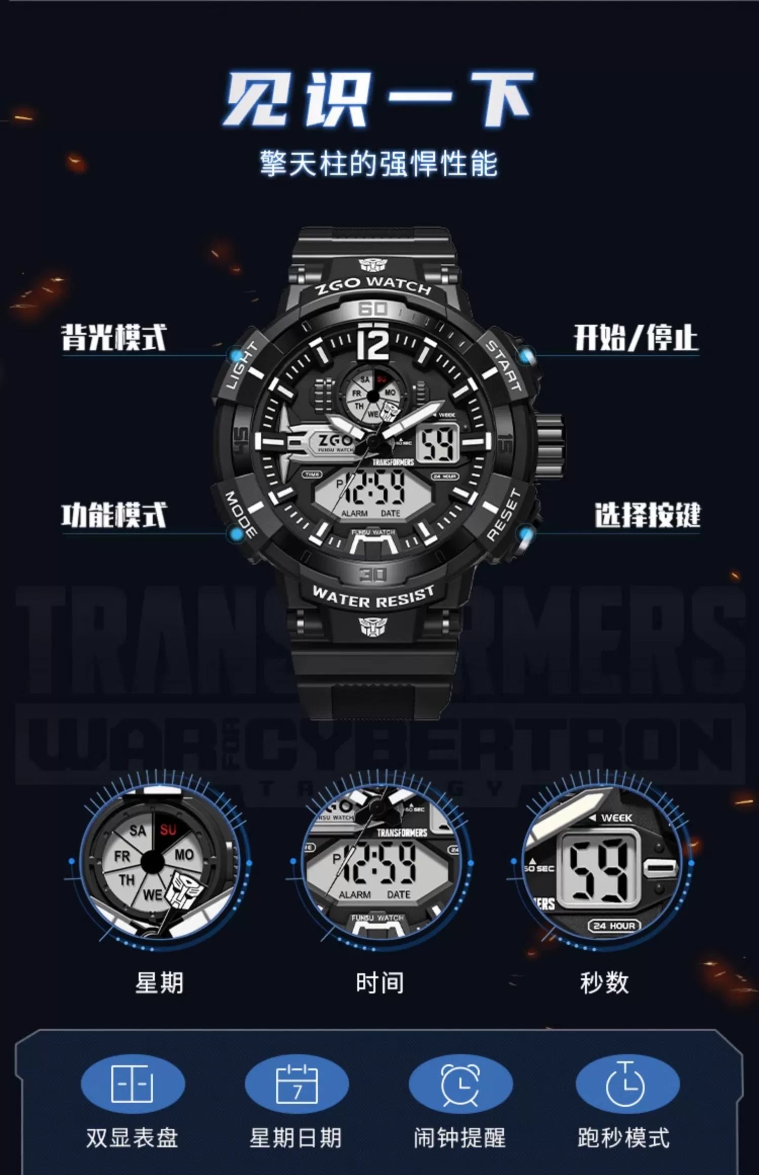 Transformers Electric Sports Watch 50M Waterproof Glow in the Dark